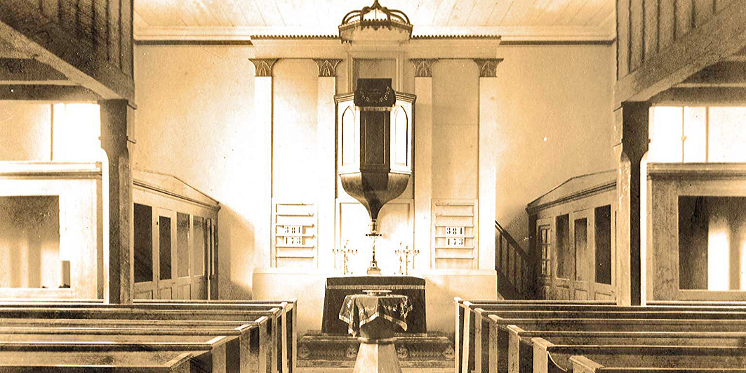 Alte Innenansicht der Böhner Kirche vor ihrem Umbau in den 1970er (?) Jahren. Sammlung Wodtke