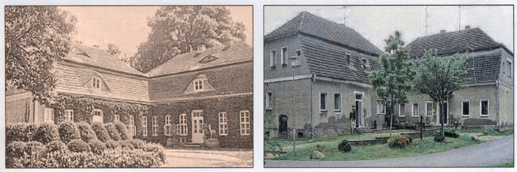 Blick in den Böhner Schlosshof mit Herrenhaus, Mitte der 1930er Jahre (li) und heutige Ansicht. Sammlung Wodtke Kein echtes Schloss – aber ein fester Begriff