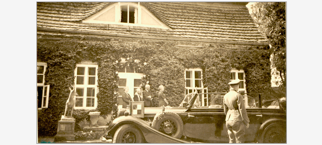 Der Dienstwagen des Generalfeldmarschalls Günter von Kluge vor dem Familienwohnsitz in Böhne (Juli 1949), Sammlung WodtkeDie Zeit der Familie von Kluge