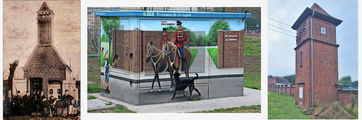 Die Trafostation Wilhelminenhof, ging nach beinahe 100 Jahren, außer Betrieb. Sie gilt als eine besonders gelungene Verknüpfung der Rathenower Ziegelindustrie und aufstrebenden Elektrifizierung in unserer Region. (rechts) alle Sammlung Wodtke