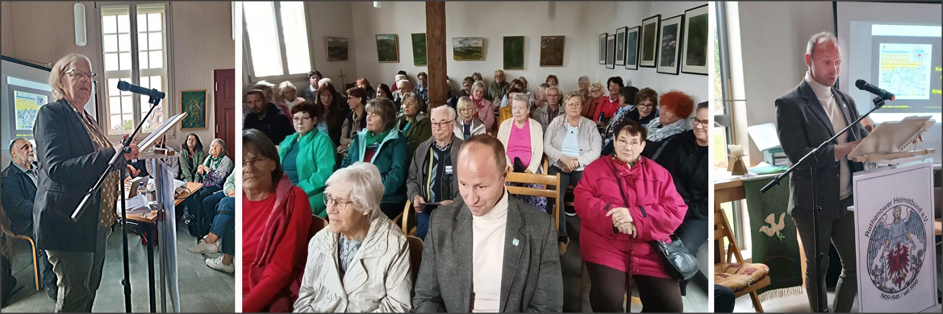 Am 25.September 2025 fand in der "Fahrrad- und Kulturkirche" in Jerchel im Milower Land die vom Rathenower Heimatbund e.V. initiierte 2. Buchlesung zur Neuveröffentlichung des 5. Bandes zu Erlebnissen zum Kriegsende in der Region statt. Fotocollage: WodtkeErstmals luden der "Rathenower Heimatbund e.V." und der "Freundeskreis der Kapelle" gemeinsam zur einer Lesung mit regionalgeschichtlichem Hintergrund in die „Fahrrad- und Kulturkirche Jerchel“, Gemeinde Milower Land ein. Die Resonanz zu der Veranstaltung , in der es um Beiträge aus dem 5. Band der Broschürenreihe „Die letzten Tage im Krieg und die ersten Wochen im Frieden in der Region um Rathenow“ ging, war für alle Beteiligten überwältigend.