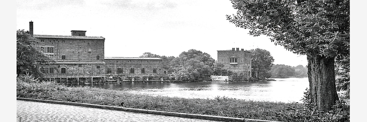 Historische Ansicht von der Schwedendammseite auf das Gebäudeensemble zu Beginn des 20. Jahrhunderts. Sammlung Wodtke