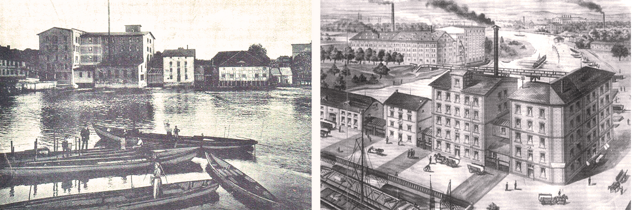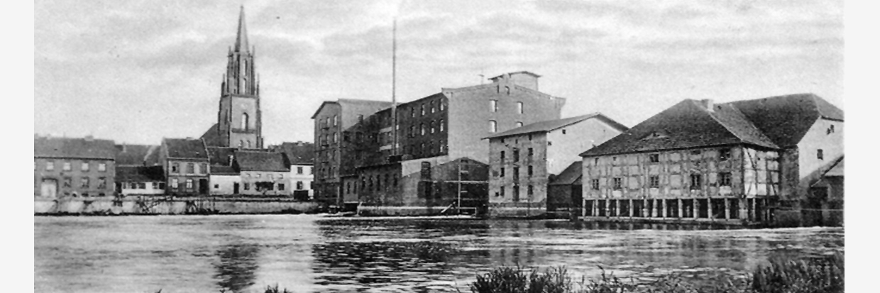 • Um 1890 – Abriss der alten Vordermühle, Neubau eines vierstöckigen Mühlengebäudes durch Griess & Möwes.