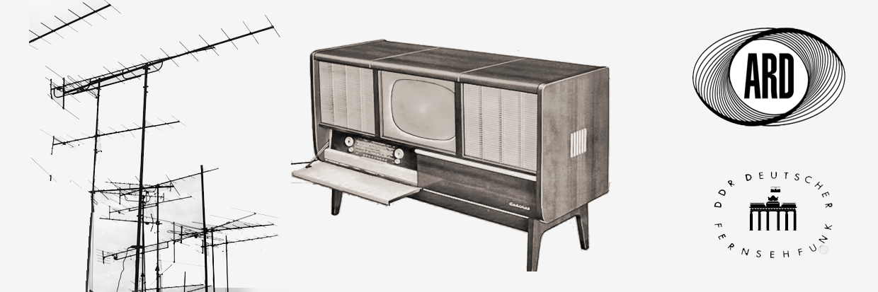 Antennenwald auf DDR-Dächern in späteren Jahren. Genau ist nicht bekannt welches Fernseh-Truhen-Modell bei Fürstenbergs Einzug hielt. Vermutlich handelte es sich aber um ein ähnliches Model wie auf der Abbildung. Collage Wodtke