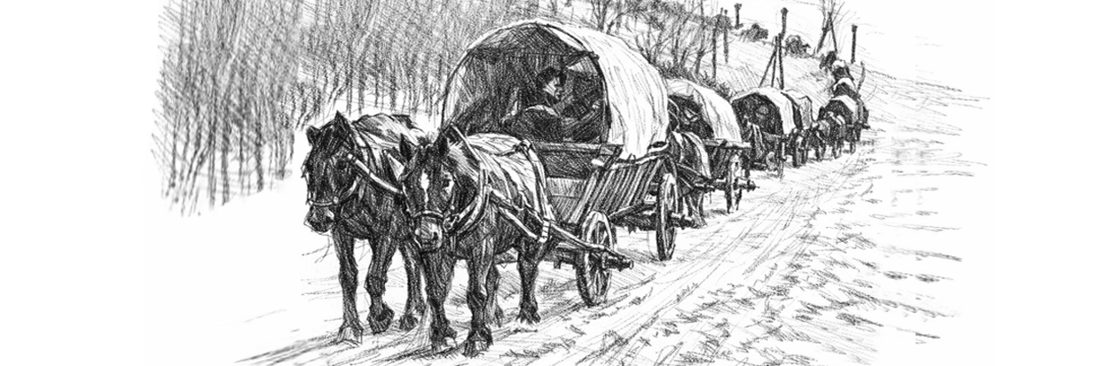 Als die russischen Einheiten am 21. Januar 1945 das etwa 10 Kilometer entfernte Deutsch-Eylau erreichten, kam endlich der Befehl zur Räumung ihres Heimatortes Sommerau. Bei Mittagstemperaturen von minus 21 °G verließ der Treck gegen Mittag bei strahlendem Sonnenschein und kniehoher Schneedecke den Ort. Alle Einwohner hofften, bald wie-er zurückkommen zu dürfen. Noch zu seht geisterte das Wunder von Ostpreußen in den Köpfen der Menschen. Damals, Im 1. Weltkrieg, hatten die deutschen Truppen die in Ostpreußen eingefallenen russischen Armeen nach aufopferungsvollen Kämpfen wieder zurückdrängen können. Doch dieses Mal war es anders. Die Rote Armee legte seit Beginn ihrer Offensive am 13. Januar 1945 täglich 40 Kilometer und mehr zurück. Da hatte die Wehrmacht nur wenig entgegenzusetzen, ganz zu schweigen, die Zivilisten.