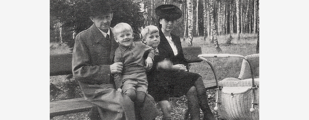 Bruno Bornstädt mit seinen Kindern Hans-Werner, Wolfgang und Reinhard (im Kinderwagen) sowie Ehefrau Elfriede im Spätsommer 1944 in Woldenberg/ Neumark. Foto: W. Bornstädt